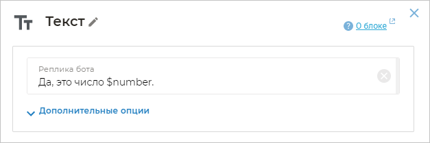 Вы можете добавить значение любой переменной в ответ клиенту. Для этого укажите имя переменной в блоке Текст, используя знак $: