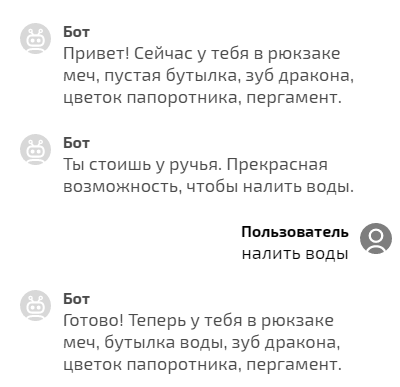 Сохраните сценарий и нажмите Тестировать. Теперь вы видите, что сначала у пользователя пустая бутылка, а после выполнения .replace часть переменной заменяется и пустая бутылка превращается в бутылку воды.