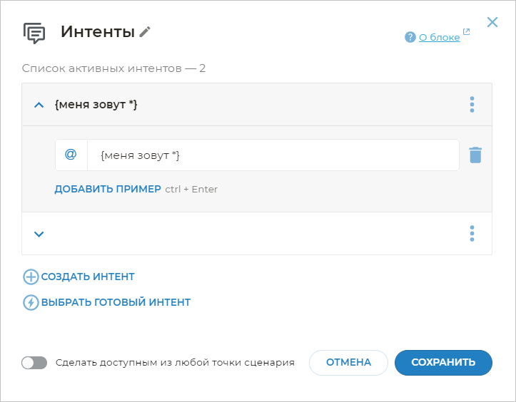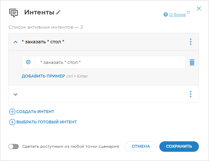 Иногда необходимо, чтобы бот реагировал не на все выражения клиента, близкие по смыслу к примерам фраз, а только на четкие шаблоны.