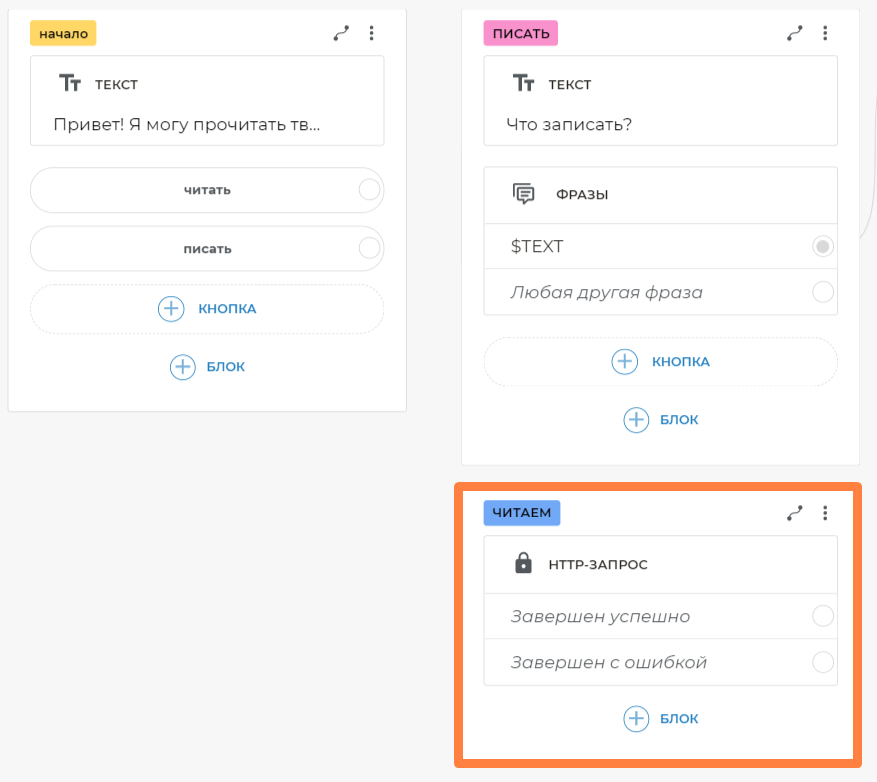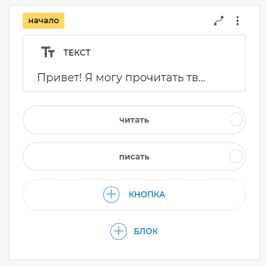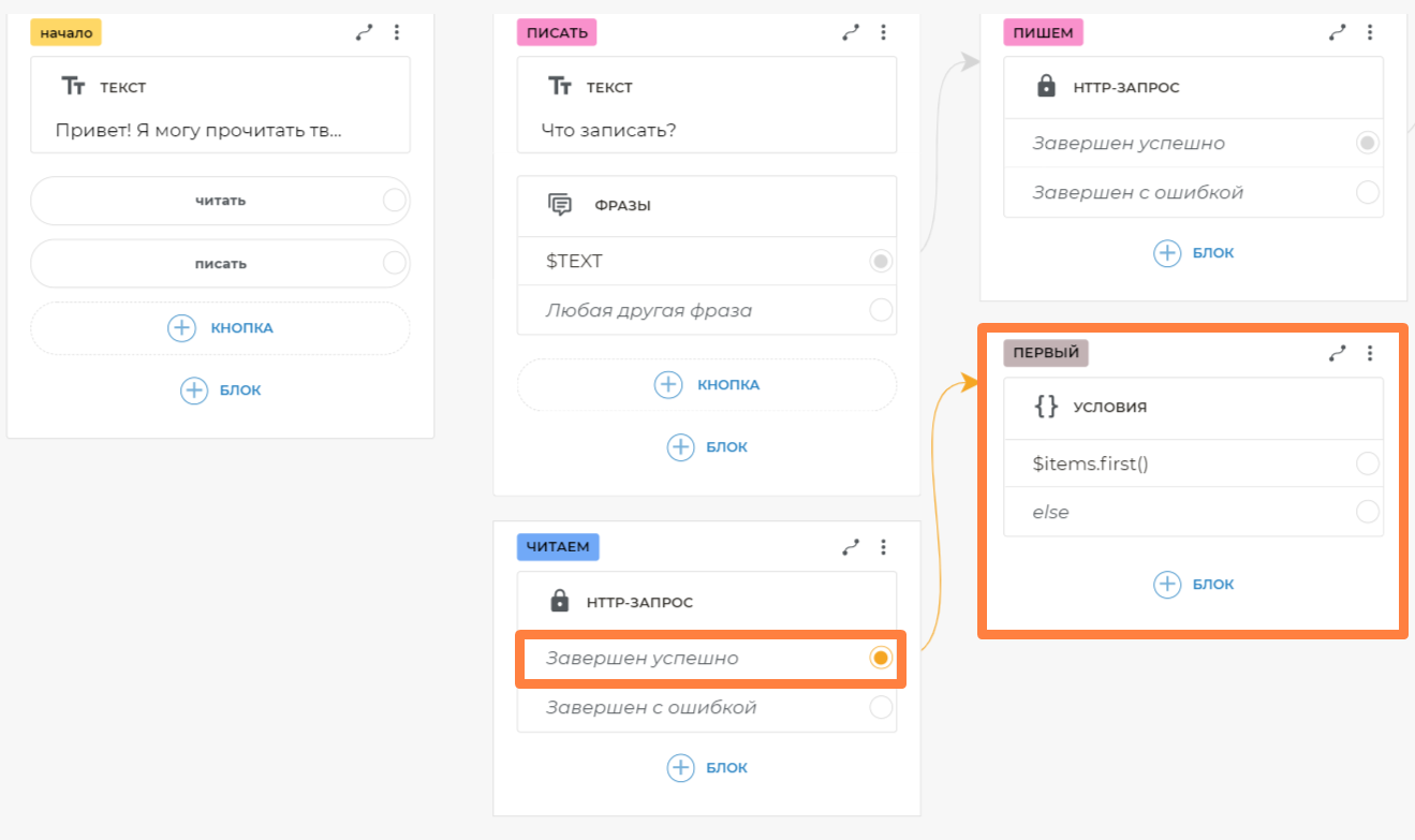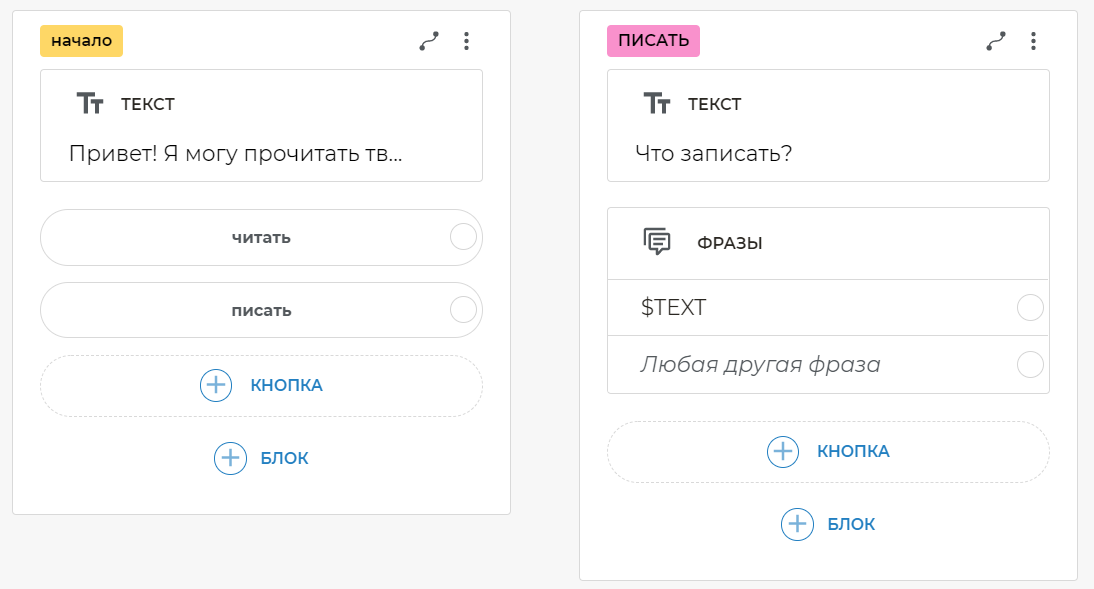 * *чит* *— свяжите этот вариант с блоком чтения из Google Таблиц* *пис* *— свяжите этот вариант с блоком, на котором есть текст Что записать?- Можете также добавить другие подобные шаблоны.