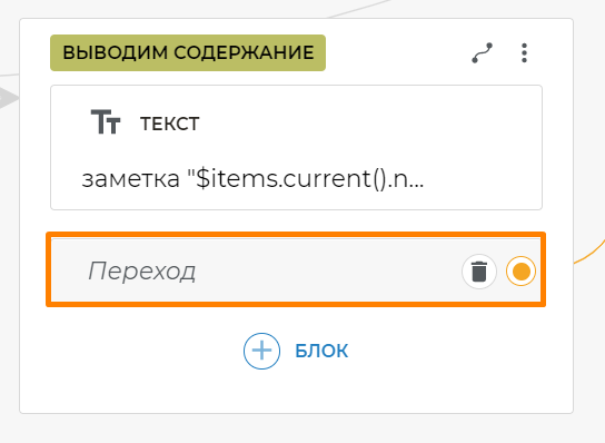 Создайте на этом экране блок Переход.