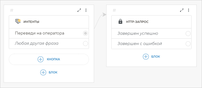 Добавьте в сценарий блок Интенты. Включите в него следующие примеры фраз: «поговорить с человеком», «переведи на оператора», «пообщаться с менеджером», «бот надоел» и другие.