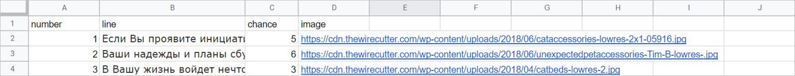 На примере урока Печеньки с предсказаниями разберем вывод изображений из Google Таблицы.