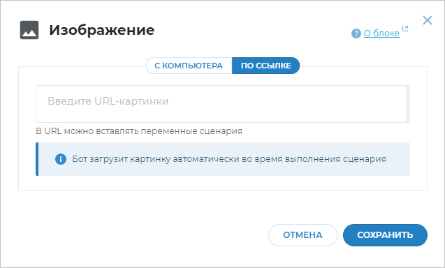 Добавление блока Изображение в сценарий