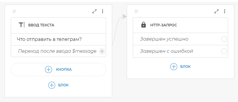 Свяжите «Переход после ввода $message» с блоком Http-запрос. Метод запроса — GET.