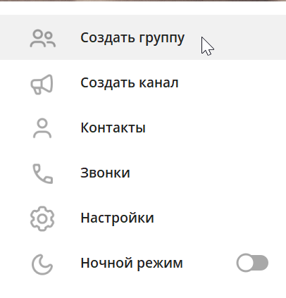 Создайте группу в Telegram, выбрав Создать группу в меню, и дайте ей название: