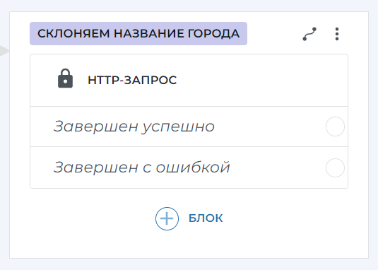 - Прежде чем вывести название города, мы можем воспользоваться сервисом morpher.ru, чтобы склонять название города. Будем совершать это с помощью этого блока HTTP-запрос: