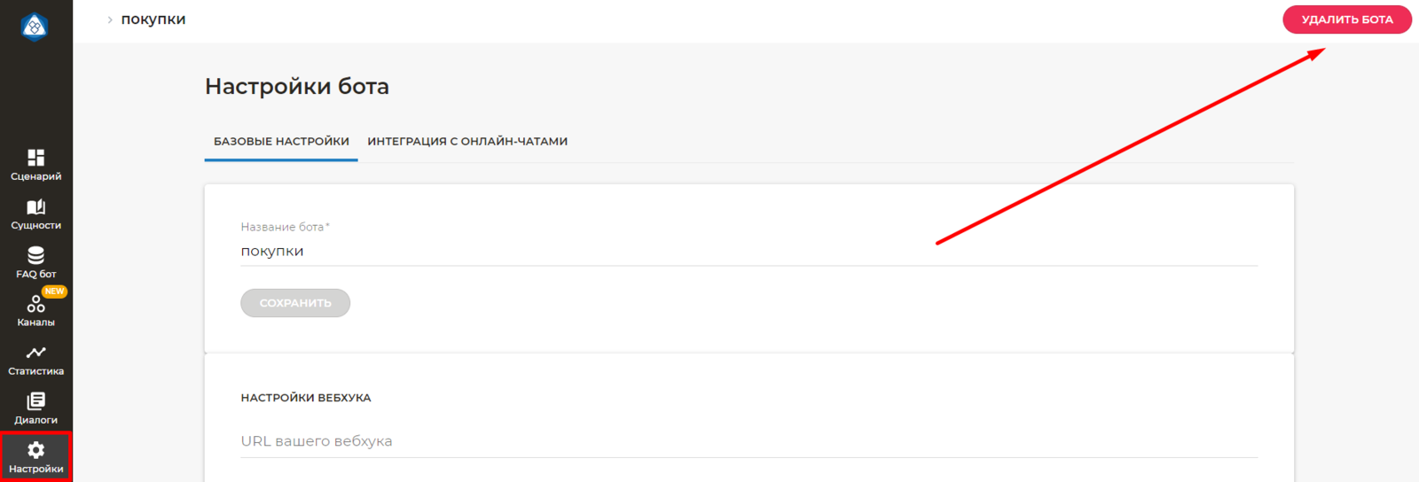 Как удалить бота