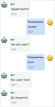 После того как клиент поздоровался, бот должен запросить его имя. А для того чтобы бот в дальнейшем прислал клиенту сообщение с полученным именем, боту нужно его сохранить.