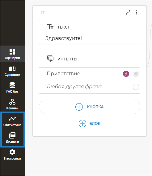 • Реплики бота — типы ответов бота клиенту в диалоге. Реплики бота можно комбинировать.