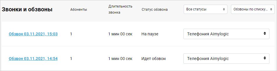 - статусу обзвона;
