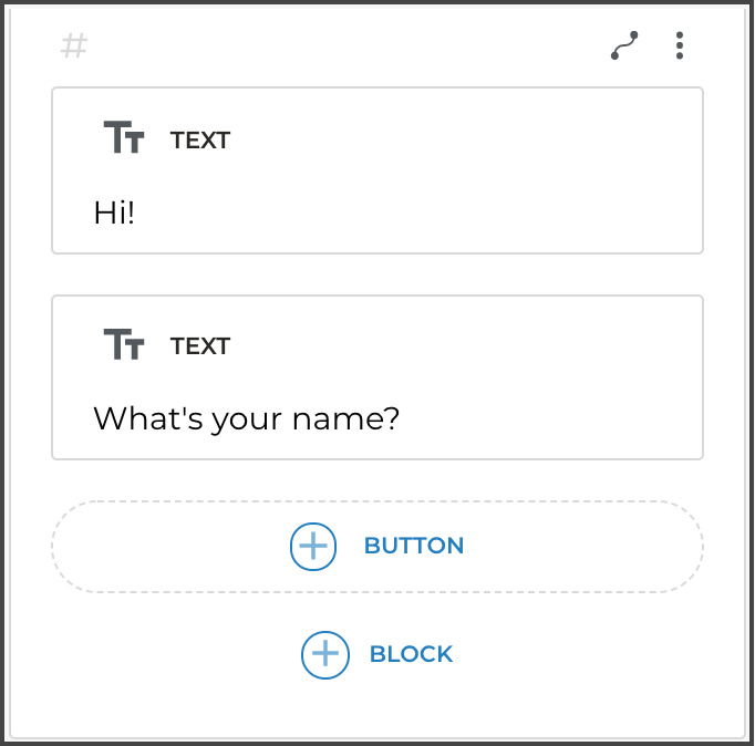 To create a new screen, hover over an empty space in your script, click “+ SCREEN” and select a block. A screen that contains one block will be created. You can later add more blocks to this screen if necessary.
