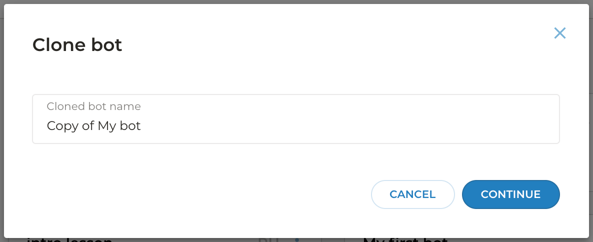 Aimylogic will create a new bot that is completely similar with the original one. It will have the same settings, Q&A base, and script.