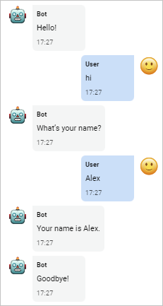 After the client has sent their greeting, the bot has to request the client’s name. Then the bot saves the client’s name and sends the message with it to the client.