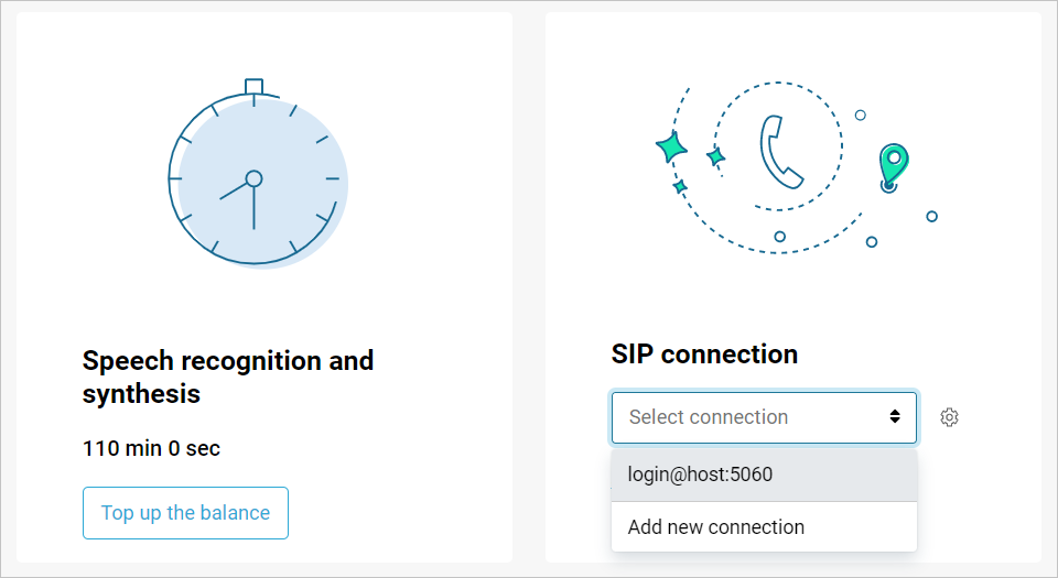 To receive calls, you should have a positive balance of speech recognition and synthesis minutes. You can see your minute balance on the Inbound telephony page.
